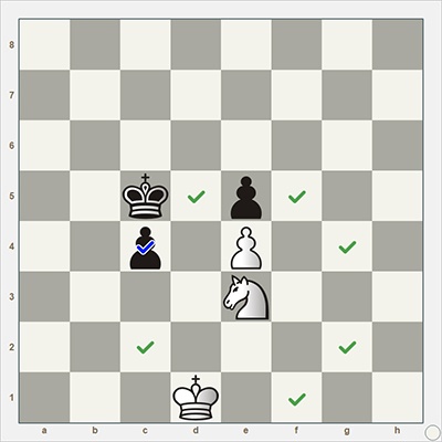 Конь может срубить вражескую фигуру только, если она стоит на той клетке, на которой завершается ход коня (см. на иллюстрации выше).