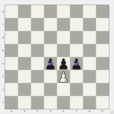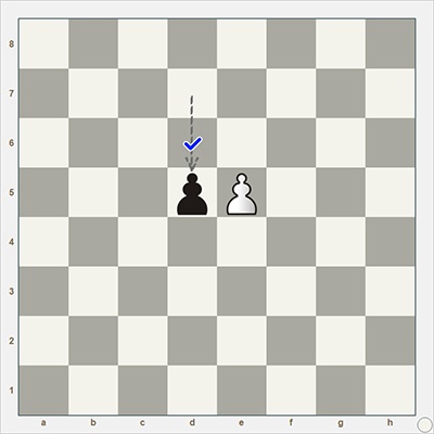 Взятие на проходе. Не так часто оно встречается, но часто о нем забывают [5] во время игры, особенно начинающие шахматисты (хотя, как ни странно, иногда забывают и профессионалы). Если пешка противника своим первым ходом пошла на две клетки вперед, а ваша пешка в итоге оказалась на соседней клетке по горизонтали, то сразу в ответ на это вы можете срубить вражескую пешку так, как будто бы она сходила не на две клетки, а на одну, т. е. как бы срубить на середине хода противника. В шахматах это называется “взятие на проходе”.