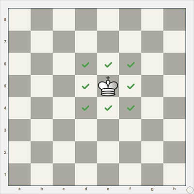король также ходит в любом направлении, но только на расстояние в одну клетку;