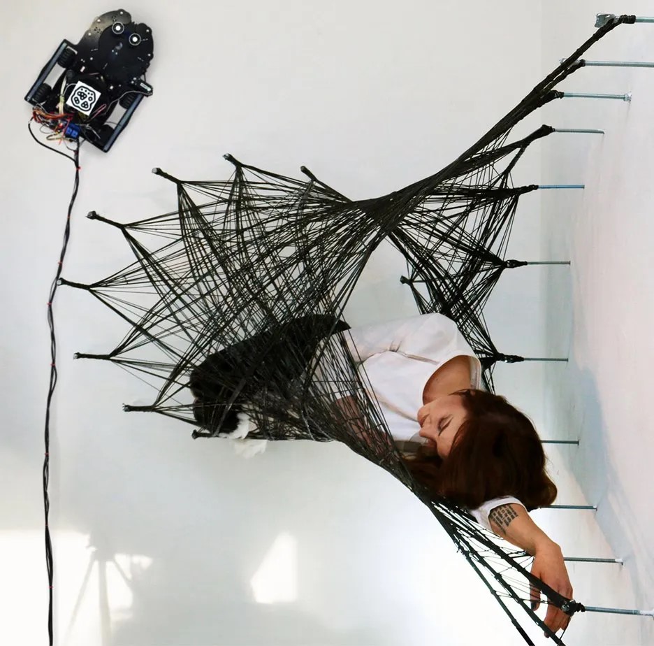 При строительстве роботы [19] могут взаимодействовать друг с другом. Кроме того, они используют специальные датчики и присоски для ориентации в пространстве и перемещения по стенам. Пока изобретение имеет ограниченный функционал. При помощи пауков-роботов человек может обзавестись комфортным гамаком, который обволакивает тело подобно кокону. Но разработчики из Университета Штутгарта продолжают исследовать архитектурные возможности пауков-роботов.