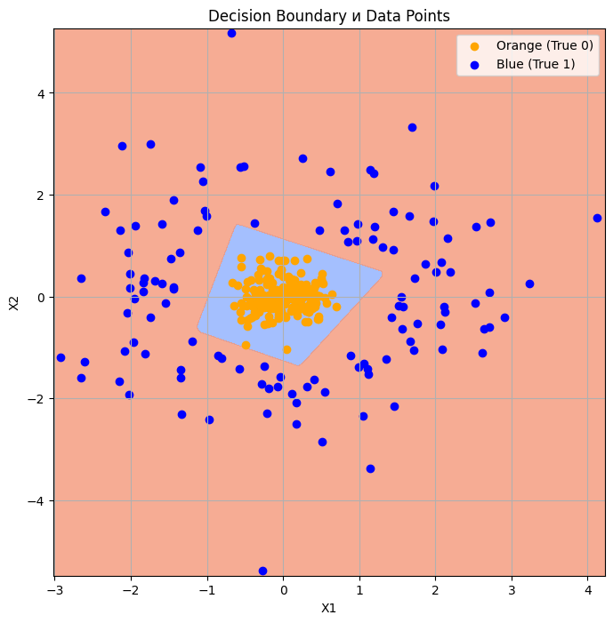 #plt.scatter(X[y == 0][::20, 0], X[y == 0][::20, 1], color='orange', label='Orange (True 0)')