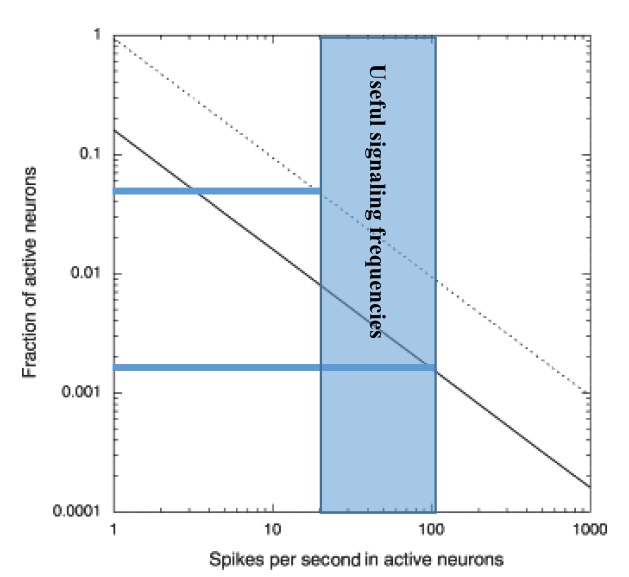 На рисунке выше показан разумный диапазон возможных долей возбуждения нейронов в полезном частотном диапазоне от 5% до 0,2%.