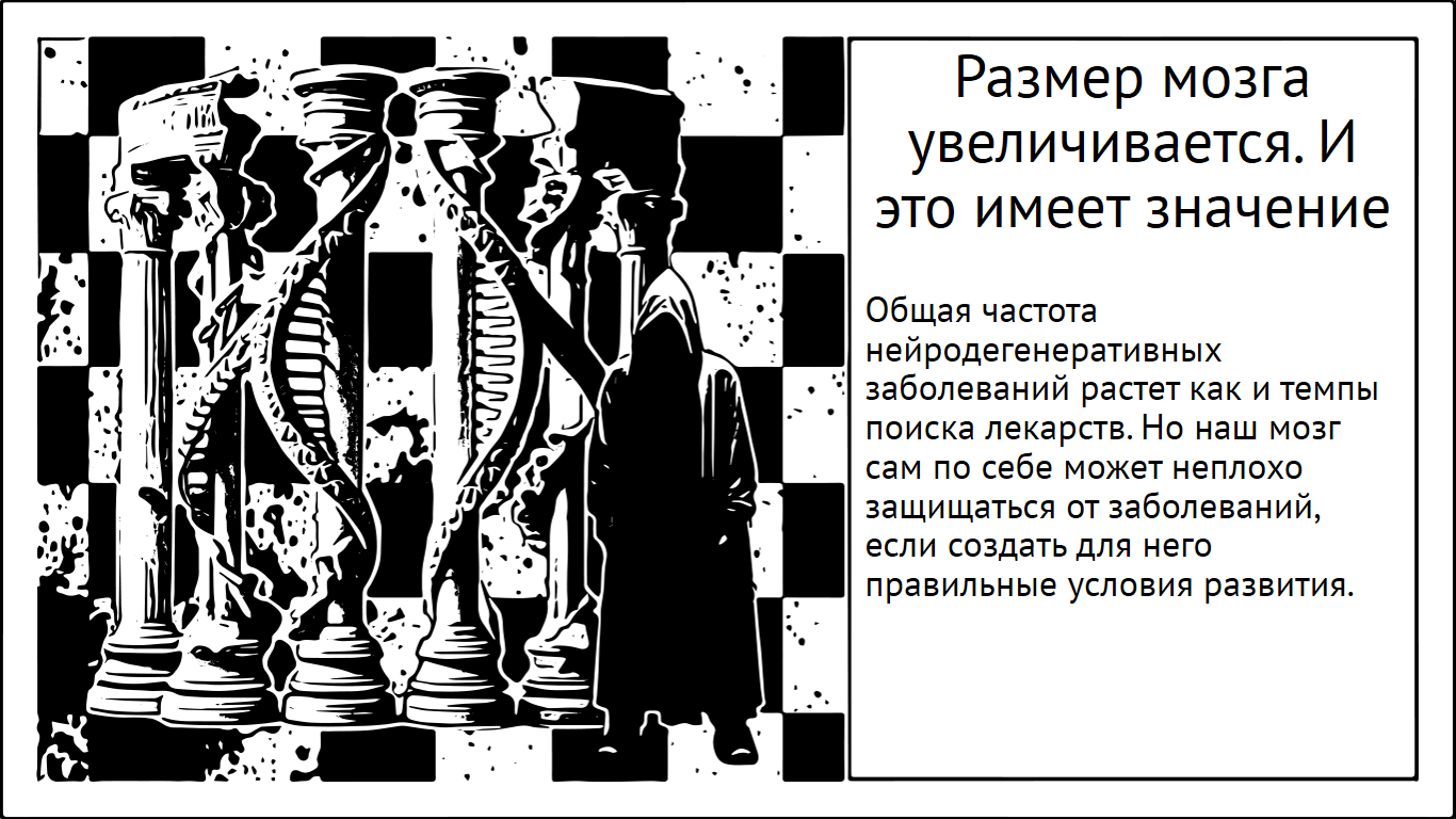 Если вы ведете здоровый образ жизни, в детстве получали достаточно питания, плюс нагружаете мозг задачами и работой, то тем самым вы создаете отличный фундамент для развития мозга в целом, и защиту от вероятных нейродегенеративных заболеваний. Вполне может быть, что адекватный ЗОЖ и когнитивные нагрузки будут отличной защитой от развития нейродегенеративных заболеваний в будущем. А никак не надежда на волшебную таблетку, которая сама все настроит в мозге.
