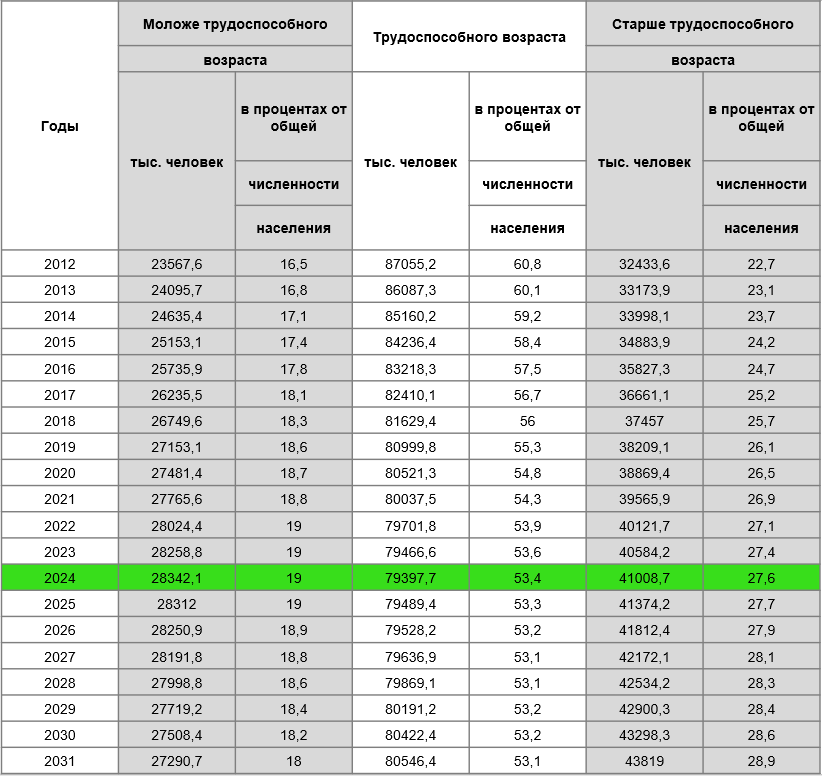 Численность трудоспособного населения. Тут немного старые прогнозные данные, они не очень точные, но соотношение +/- верное. Просто проиллюстрировать мысль.
