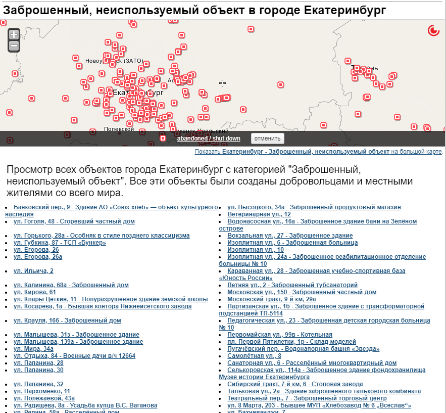 Оказалось, у нас нет какой-то полной карты заброшенных мест, чтобы показать вам красивые картинки по категориям. Но оно и понятно, кому нужны заброшенные объекты на карте. Вот самый полный вариант который я нашел, но тут все постройки без разделения (заводы, деревни, магазины, склады, дома).