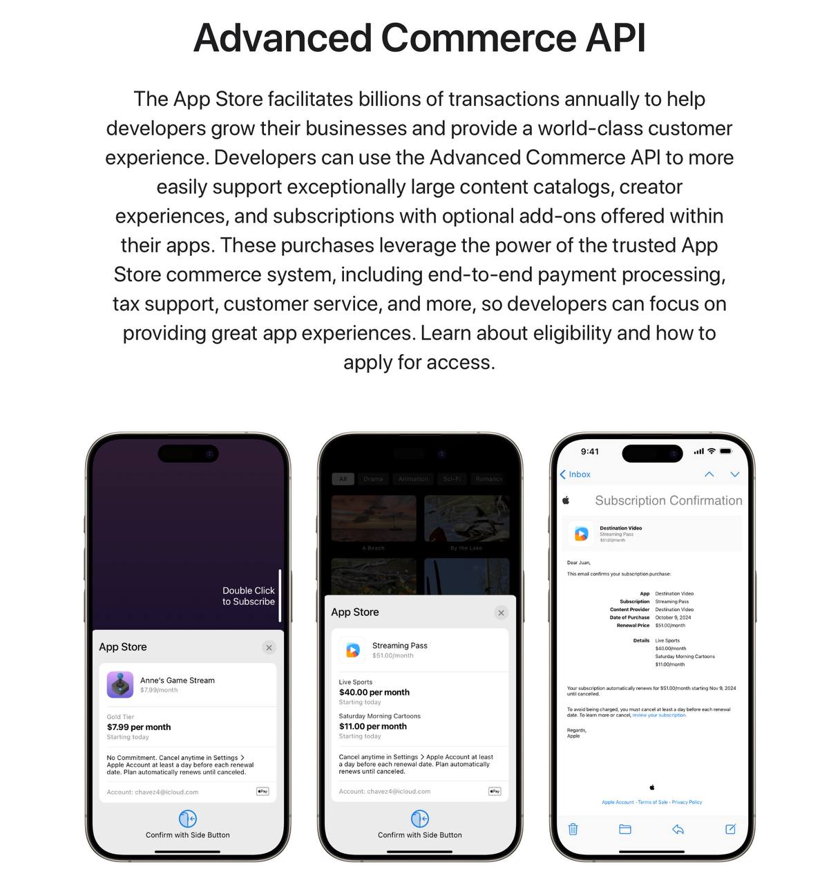Apple анонсировала для разработчиков Advanced Commerce API – новый инструмент для расширенных встроенных покупок