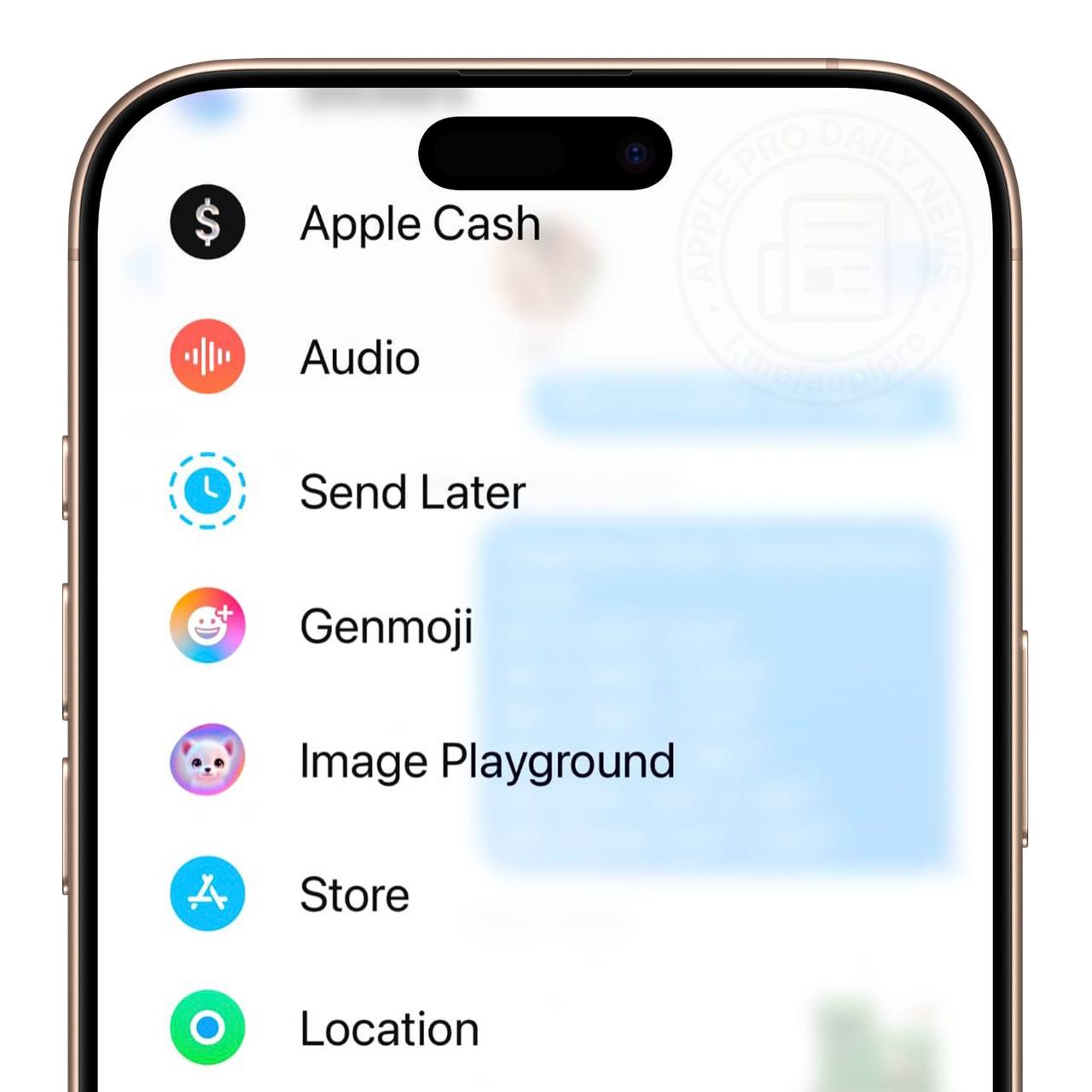 В приложении «Сообщения’ добавлен быстрый доступ к Genmoji по нажатию на «+»