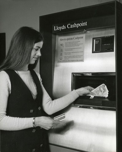 Рекламное фото банкомата Lloyds Cashpoint разработки компании IBM