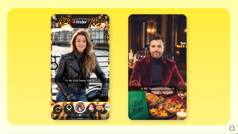 Среди брендов, которые уже использовали новый формат рекламы, — Tinder и Uber. Реклама Tinder позволяла пользователям создавать персонализированные изображения с подписью «Моя атмосфера для свиданий в 2025 году», а реклама Uber позволяла пользователям делать то же самое, но с акцентом на День благодарения.