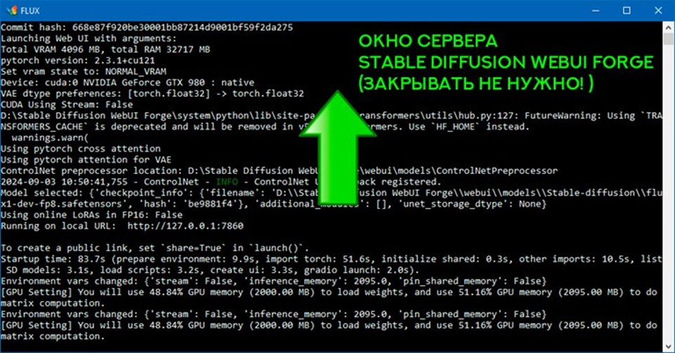 Получаем подтверждение тому, что модель flux1-dev-bnb-nf4-v2.safetensors работает на нашем компьютере без сбоев.