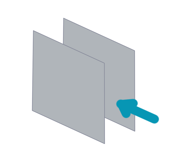 Чтобы наглядно увидеть этот эффект, возьмите в руки два листка бумаги формата А4 и расположите их вертикально на расстоянии 7-8 см друг от друга и подуйте строго между ними, как на рисунке 2. Вопреки интуитивным ожиданиям, листки бумаги не станут разлетаться в стороны, а наоборот, станут как будто прижиматься друг к другу. Это происходит за счёт того, что воздушный поток создает пониженное давление в области между листками по сравнению с окружающим воздухом.