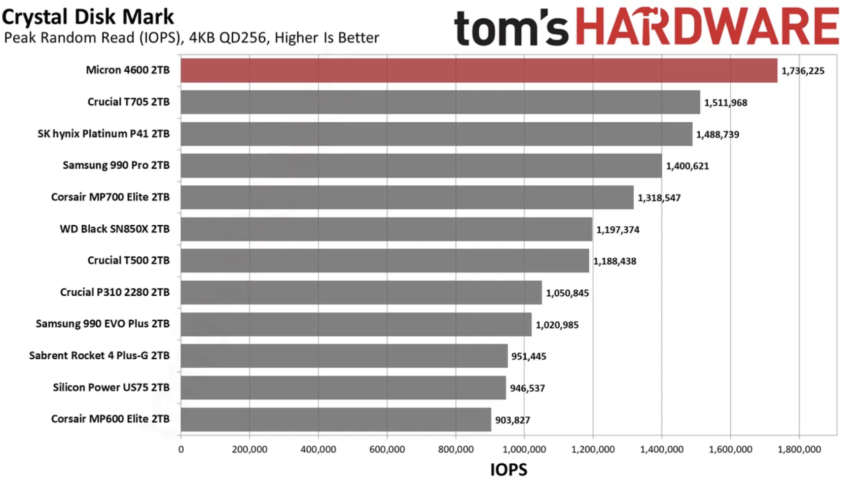 Можно задаться вопросом, зачем нужен такой быстрый диск. Micron позиционирует 4600 как решение для профессиональных задач, включая искусственный интеллект, что подразумевает, что диск является хорошим выбором для HEDT (high-end desktop). Несомненно, этот диск также более чем пригоден для игр в будущем, а его пиковая производительность превосходит аналоги. С его появлением на рынке устанавливается новая планка для SSD-накопителей, так как система хранения данных PCIe 5.0 становится все более совершенной.