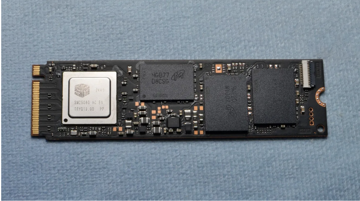 Micron удалось вместить в односторонний корпус немного всего. Сюда входит LPDDR4 DRAM (более эффективная, чем DDR4) для кэширования метаданных, а также до 4 ТБ быстрой TLC-флэш-памяти. При этом используется всего два пакета NAND, что должно облегчить охлаждение накопителя. Это хорошая новость для тех, кто беспокоится о горячем охлаждении твердотельных накопителей PCIe 5.0, особенно если есть намерение использовать диск в HTPC, ноутбуке или другом портативном устройстве. Наш образец также оснащен разъемом для подключения устройств отладки, что позволяет говорить об окончательном переходе от стадии прототипа.