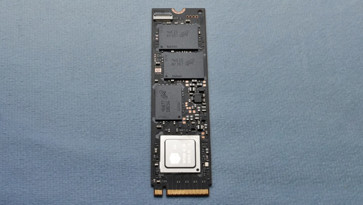 На нашем накопителе для предварительного тестирования нового контроллера SMI использовалась 162-слойная TLC-флэш-память Kioxia (BiCS6). Секретное решение Micron — новая 276-слойная TLC-флэш-память. Предыдущее поколение, 232-слойную флэш-память, компания Crucial хорошо использовала в моделях T500, T700 и T705, и эта флэш-память используется в большинстве известных твердотельных накопителей PCIe 5.0. Новое поколение флэш-памяти не слишком отличается от предыдущего: в нем по-прежнему используется шестиплоскостная компоновка с общим акцентом на плотность, а не на производительность. Предыдущие поколения были только четырехплоскостными, поэтому они обладали меньшим потенциалом пропускной способности, но, в свою очередь, были менее сложными. Micron усовершенствовала свою 232-слойную флэш-память для повышения производительности, особенно в отношении задержки чтения 4K, что помогает закрепить за архитектурой статус более быстрой, а не просто более компактной.
