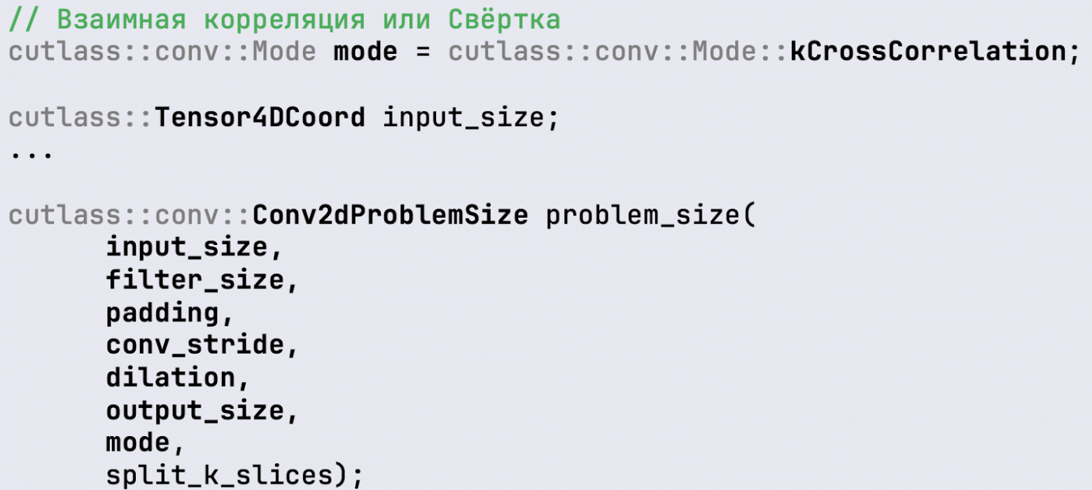 Как вызвать свертку в библиотеке CUTLASS
