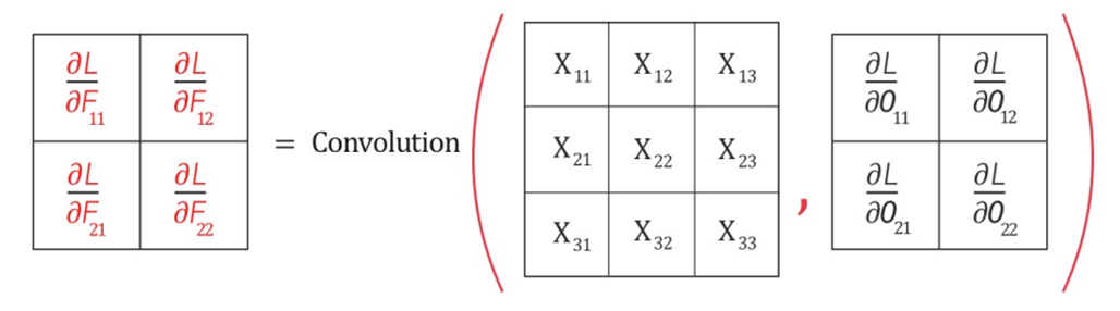 Допустим, изображение большое, а мы прошли по нему ядром 3х3. Результат получился достаточно большой, так как ядро было маленькое и, соответственно, результат мало изменился в размерах. При обратном проходе нам придется умножать на градиент результата по следующей схеме: