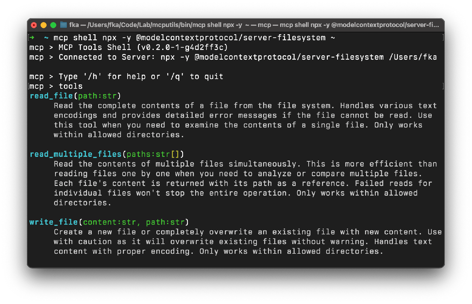 MCP Tools поддерживает ввод/вывод данных через stdin/stdout или HTTP и выдает результаты в виде JSON или таблиц. Он даже позволяет создавать макеты серверов для тестирования или передавать MCP-запросы сценариям оболочки.
