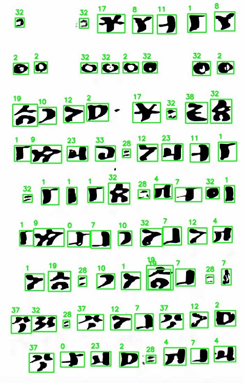 Внедрение класса неизвестной руны помогает нам проанализировать, насколько соответствует набор данных выбранному руническому алфавиту. Несмотря на то, что 342 класс является одним из самых многочисленных в выборке, всего 6% надписей принадлежат другим алфавитам (рис. 6). Результаты работы классификатора на одном из тестовых примеров представлены на рисунке 9. На этом примере была всего одна руна из класса 342, которую модель успешно обнаружила. Тем не менее, 7 неизвестных рун были ошибочно отнесены к нашему алфавиту.