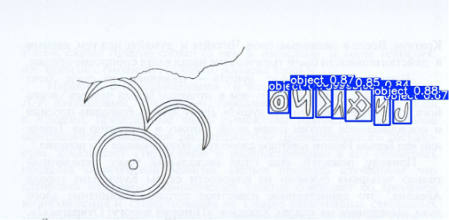 Основная проблема, с которой мы столкнулись в ходе исследования – нехватка размеченных данных. Кроме того, некоторые изображения были проаннотированны неполностью, что путает модель и приводит к некорректной оценке. Представленные в работе модели обучались на небольшом наборе, включающем всего 81 изображение. Такое малое количество примеров существенно ограничивает способность модели к обобщению, особенно в условиях высокой внутриклассовой вариативности рунических символов и наличия фоновых шумов на фотографиях.