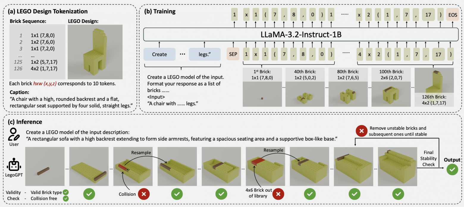 Исследователи Университета Карнеги — Меллона представили нейросеть LegoGPT, которая генерирует схемы сборки моделей из деталей Lego. Код проекта открыт, а на Hugging Face есть бесплатное демо.