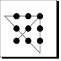 Соедините девять точек четырьмя прямыми линиями, не отрывая руки.