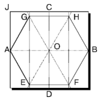 Первое: согните бумагу пополам по горизонтали и по вертикали, формируя линии АВ и СD. Затем совместите точки А и О, чтобы получить линию GE, и B с О, чтобы получить линию FH. Изогните AJ так, чтобы точка J легла на линию GE. Вы получите точку G. Аналогичным образом получаются и точки E, F и H.